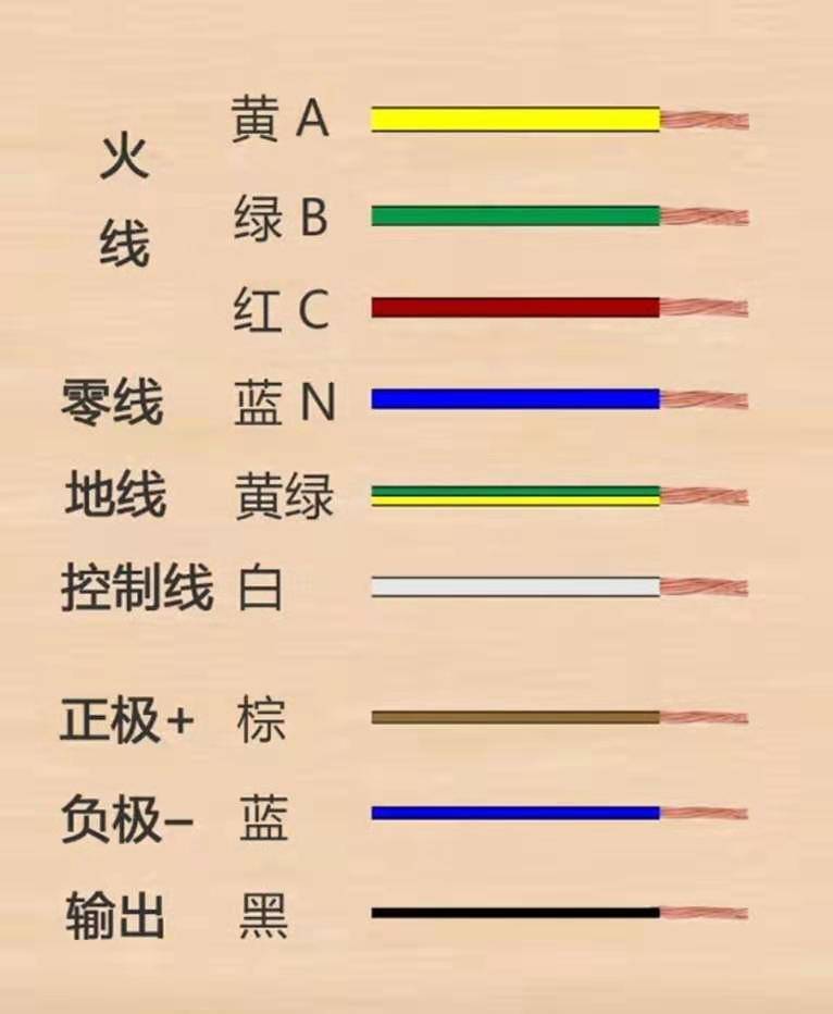火线:棕色(单相)、棕色/黑色/灰色(三相)